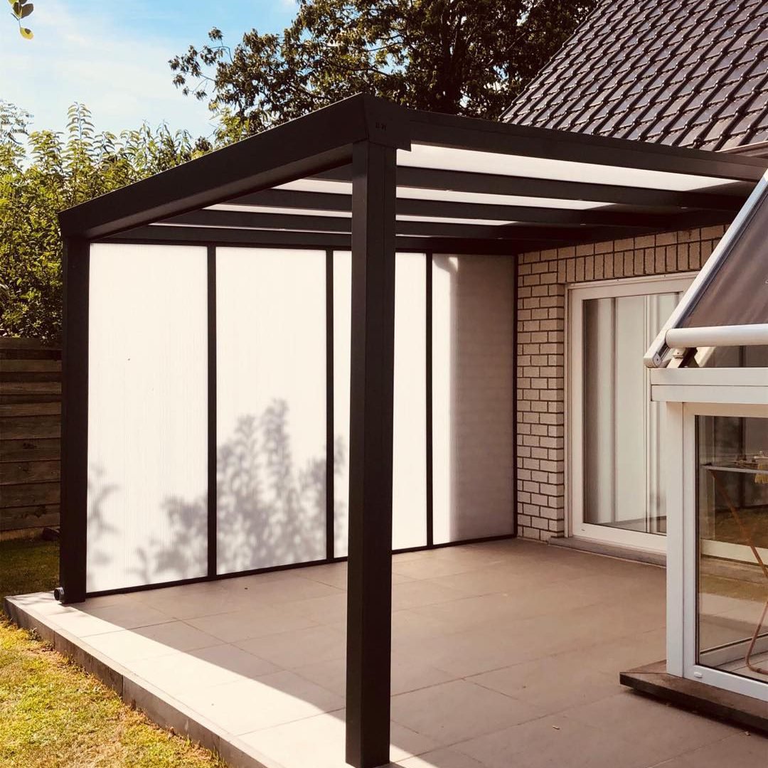 3 type aluminium terrasoverkappingen op maat. Keuze uit standaart, klassiek en strak model.