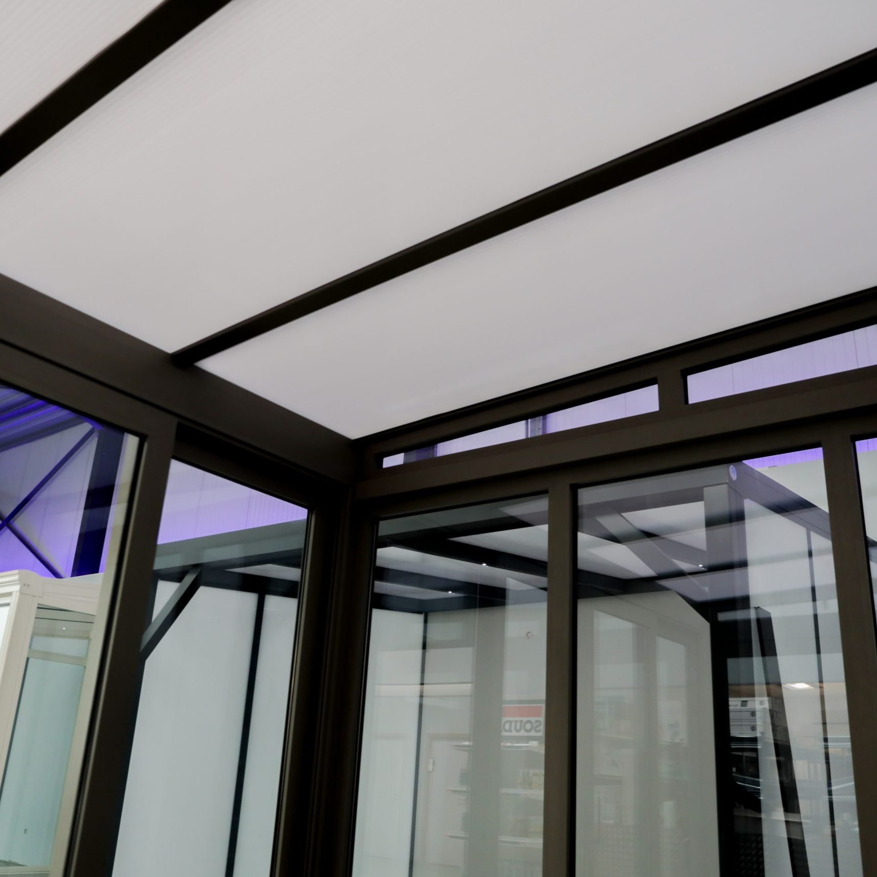 Onze thermische veranda’s zijn standaard te leveren in standaard afmetingen of op maat. U kunt kiezen voor de gewenste ral kleur, dakplaten opaal of helder en led verlichtingen.